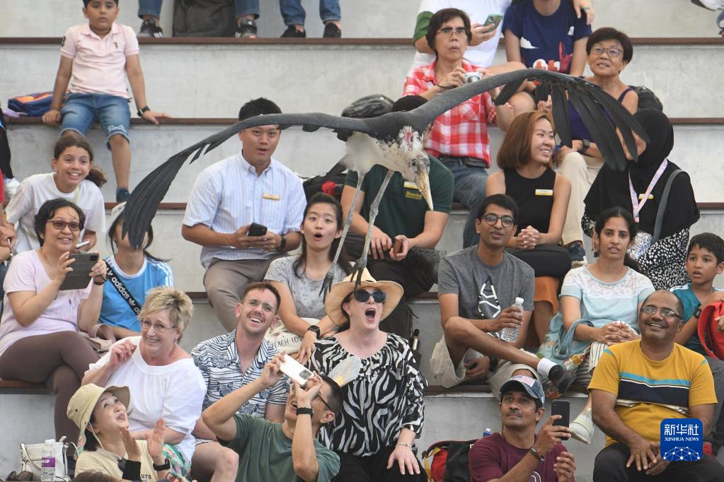 5月8日,觀(guān)眾在新加坡飛禽公園開(kāi)放當天來(lái)到園內欣賞飛禽表演。