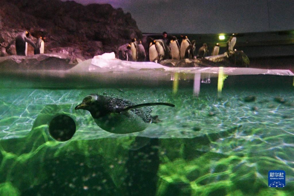 這是5月8日新加坡飛禽公園開(kāi)放當天拍攝的潛水的企鵝。