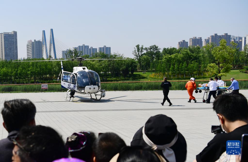 5月9日,2023年安徽省防震減災科普宣傳周暨合肥市第八個(gè)防震減災宣傳演練月主場(chǎng)活動(dòng)在肥西縣上派鎮舉行。這是直升機在活動(dòng)現場(chǎng)參與應急救援演練。