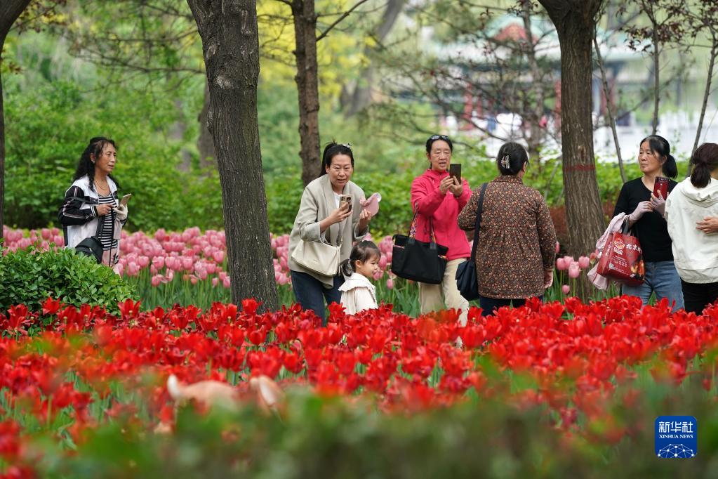 近日,山西省太原市迎澤公園內各色郁金香競相綻放,吸引游人前來(lái)觀(guān)花賞景。