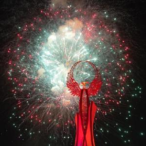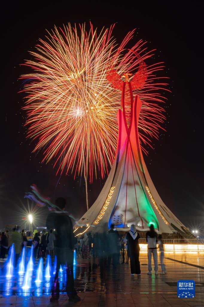 5月9日,煙花在烏茲別克斯坦首都塔什干上空綻放,慶?!凹o念和榮譽(yù)日”。