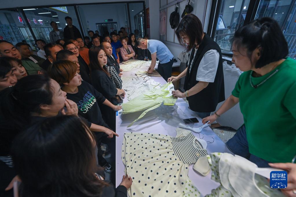 5月10日,在位于湖州吳興區織里鎮的織里國際輕紡城內,顧客在挑選樣衣。