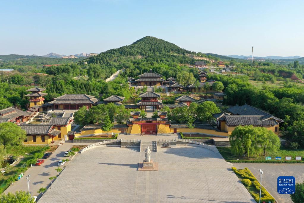 這是位于淄博市臨淄區的管仲紀念館(5月8日攝,無(wú)人機照片)。