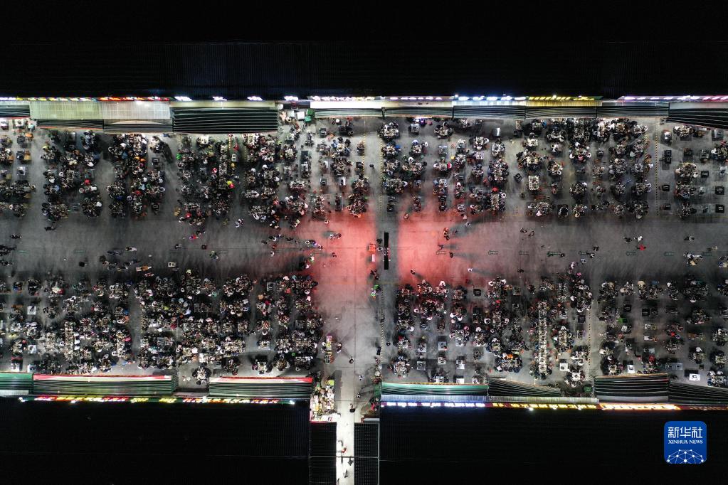 這是位于淄博市臨淄區的臨淄燒烤大院(5月8日攝,無(wú)人機照片)。