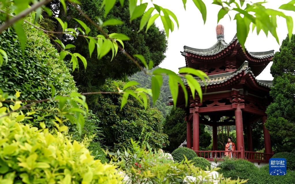 游客身著(zhù)漢服在西安華清宮景區內游覽參觀(guān)(5月5日攝)。