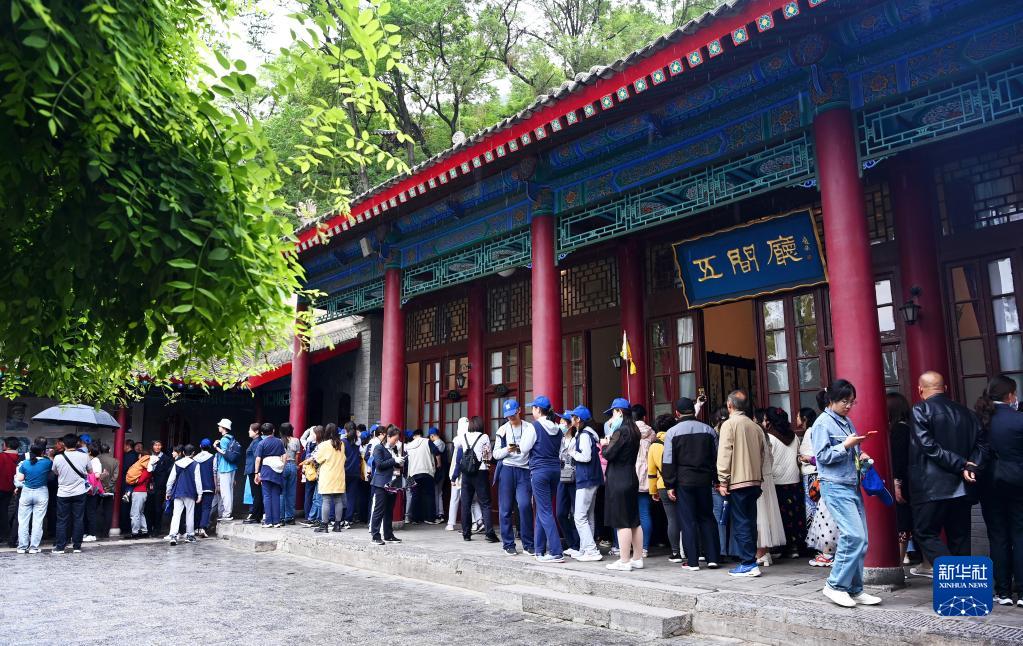 游客在西安華清宮景區內“西安事變”舊址之一五間廳游覽參觀(guān)(5月5日攝)。