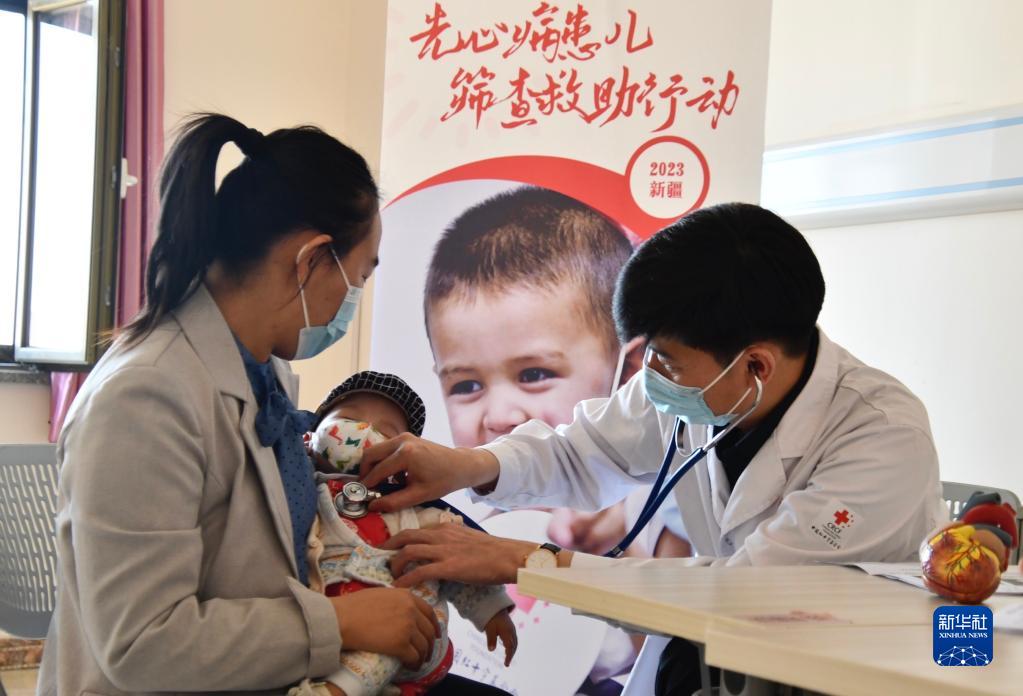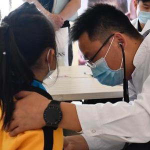 5月10日,無(wú)錫明慈心血管病醫院的心血管病專(zhuān)家在為參加篩查的兒童進(jìn)行診斷。