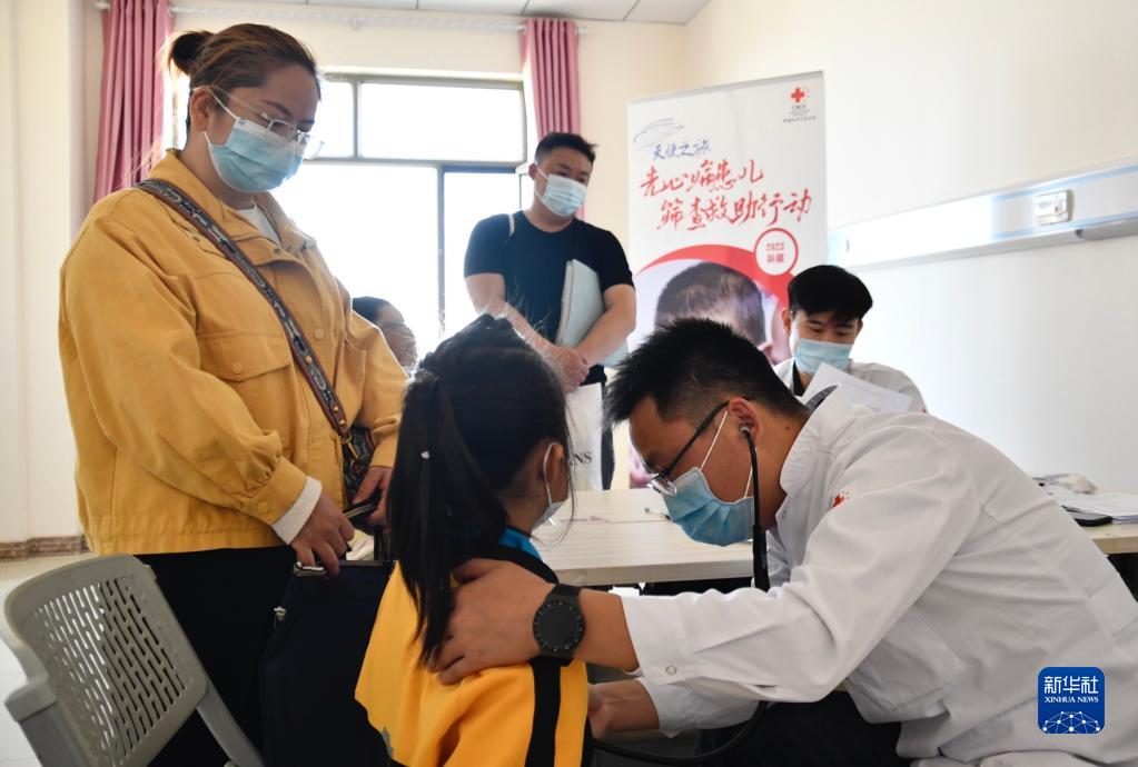 5月10日,無(wú)錫明慈心血管病醫院的心血管病專(zhuān)家在為參加篩查的兒童進(jìn)行診斷。