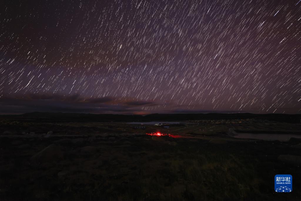 4月21日晚拍攝的星空下的高海拔宇宙線(xiàn)觀(guān)測站(LHAASO)(合成照片)。