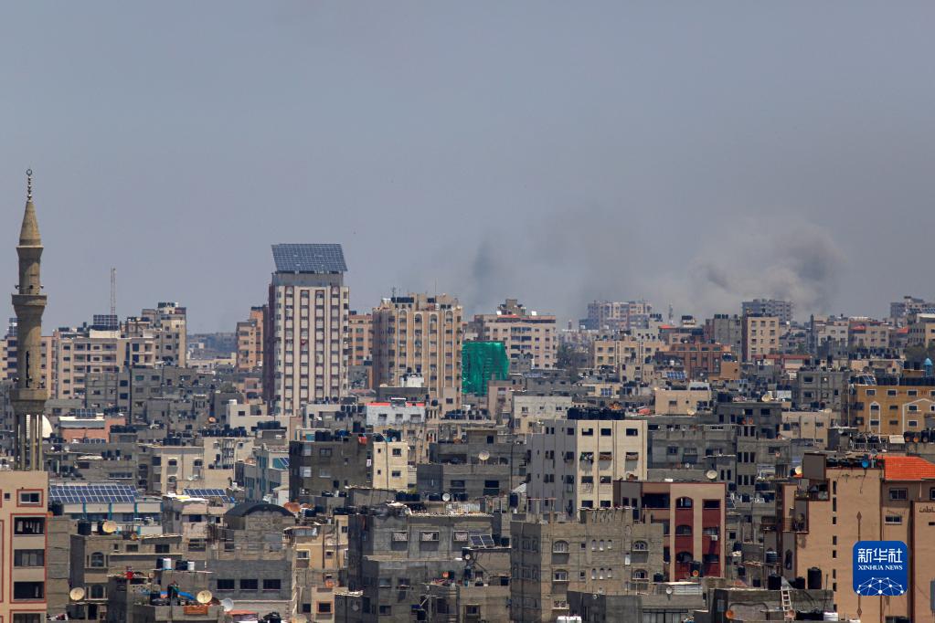 5月10日,在加沙城,以色列軍隊的空襲造成爆炸和濃煙。