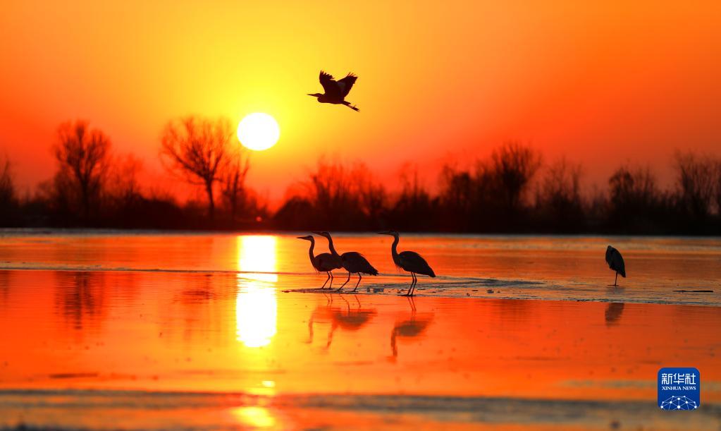 這是中國河北省衡水湖落日的資料照片(2022年12月29日攝)。