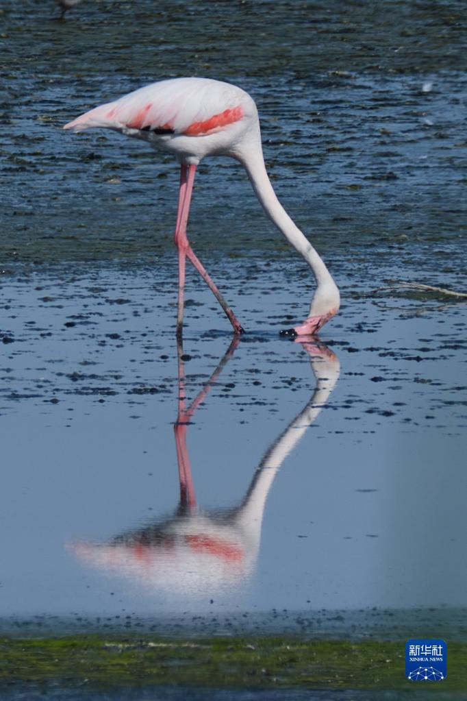 5月8日,火烈鳥(niǎo)在西班牙富恩特皮埃德拉湖覓食。