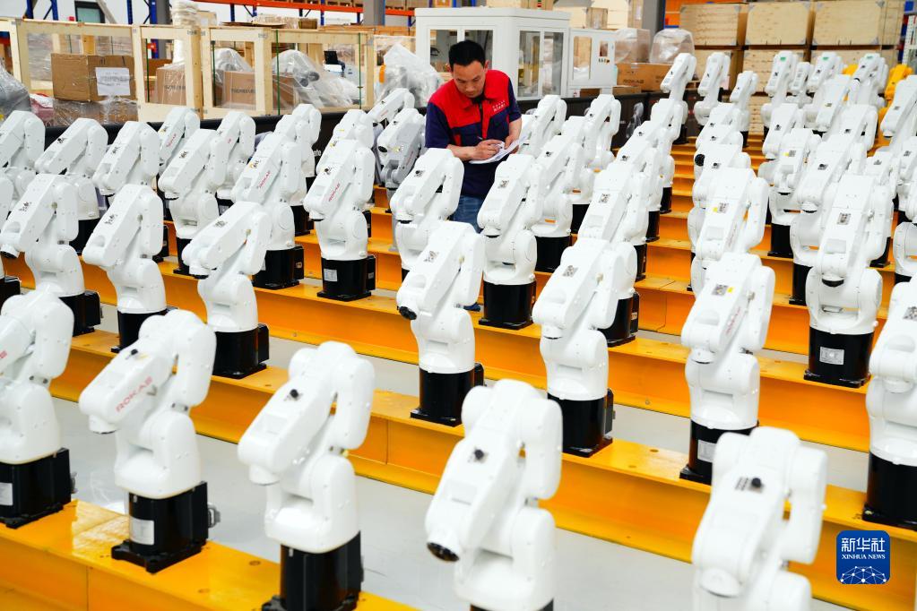 5月11日,在鄒城市機器人產(chǎn)業(yè)園,工作人員在質(zhì)檢工業(yè)機器人。