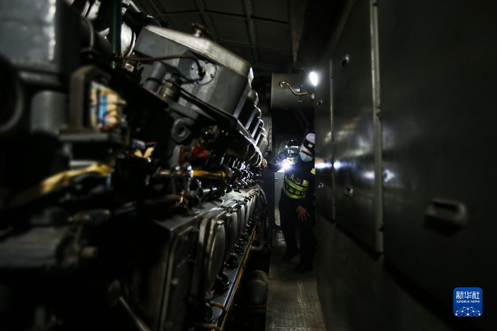5月7日,在新疆霍爾果斯鐵路口岸,霍爾果斯出入境邊防檢查站執勤民警對出境列車(chē)內部進(jìn)行檢查。