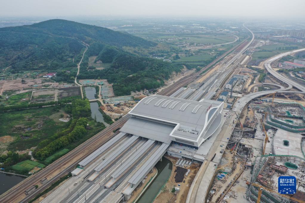 這是滬寧沿江高速鐵路江陰站站房(4月28日攝,無(wú)人機照片)。新華社記者 季春鵬 攝