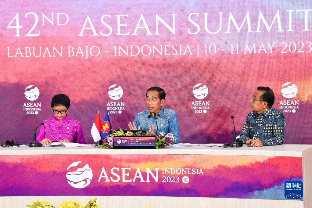 5月11日,在印度尼西亞拉布安巴焦,印尼總統佐科(中)在第42屆東盟峰會(huì )閉幕后召開(kāi)新聞發(fā)布會(huì )。
