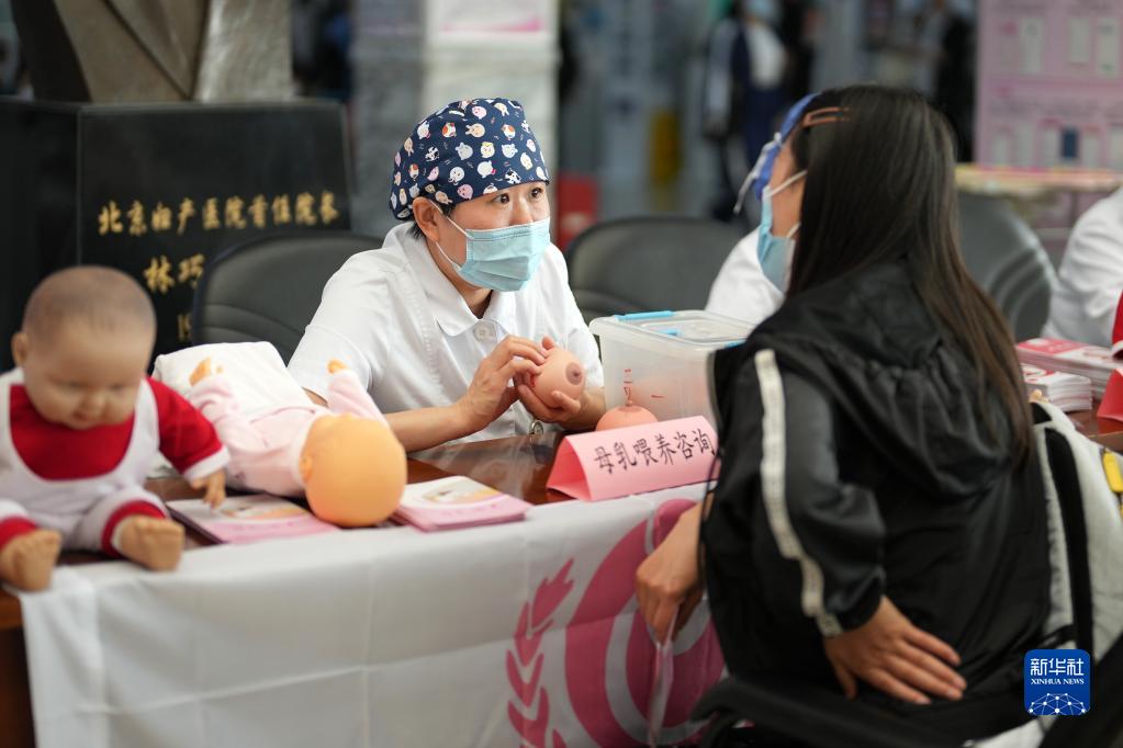 5月12日,護理專(zhuān)家在首都醫科大學(xué)附屬北京婦產(chǎn)醫院東院區為患者答疑解惑。