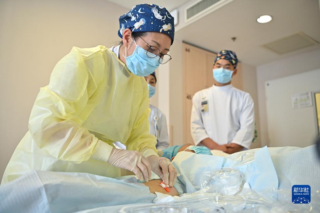 5月9日14時(shí)許,北京協(xié)和醫院臨床營(yíng)養科護士長(cháng)孫文彥(前)在給患者置入外周中心靜脈導管(PICC)。外周中心靜脈導管是危重癥和慢病患者的“生命線(xiàn)”,1997年北京協(xié)和醫院引進(jìn)PICC置管術(shù)。