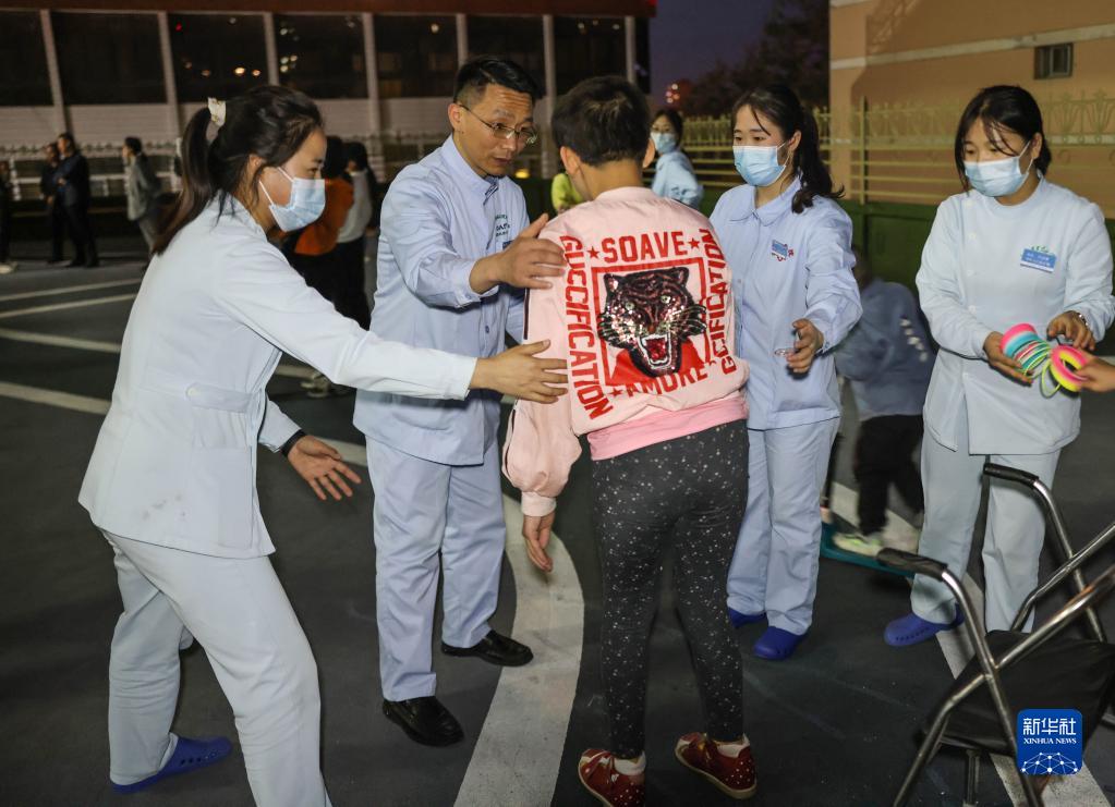 5月8日晚,康復治療師和評估師在渭南腦病康復醫院的天臺輔導患兒進(jìn)行家庭康復融合訓練。
