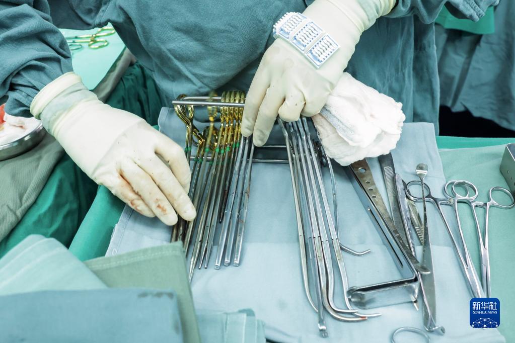 5月9日20時(shí)許,北京協(xié)和醫院手術(shù)室護士在手術(shù)臺旁清點(diǎn)器械。