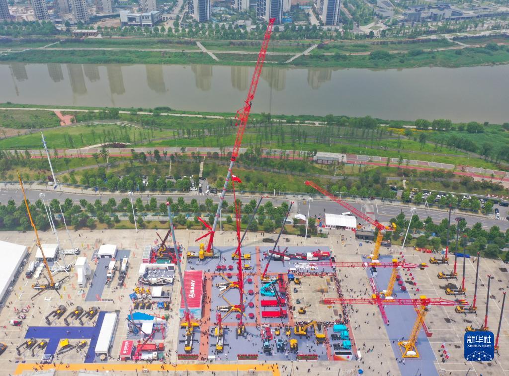 這是5月12日拍攝的長(cháng)沙國際工程機械展覽會(huì )現場(chǎng)(無(wú)人機照片)。