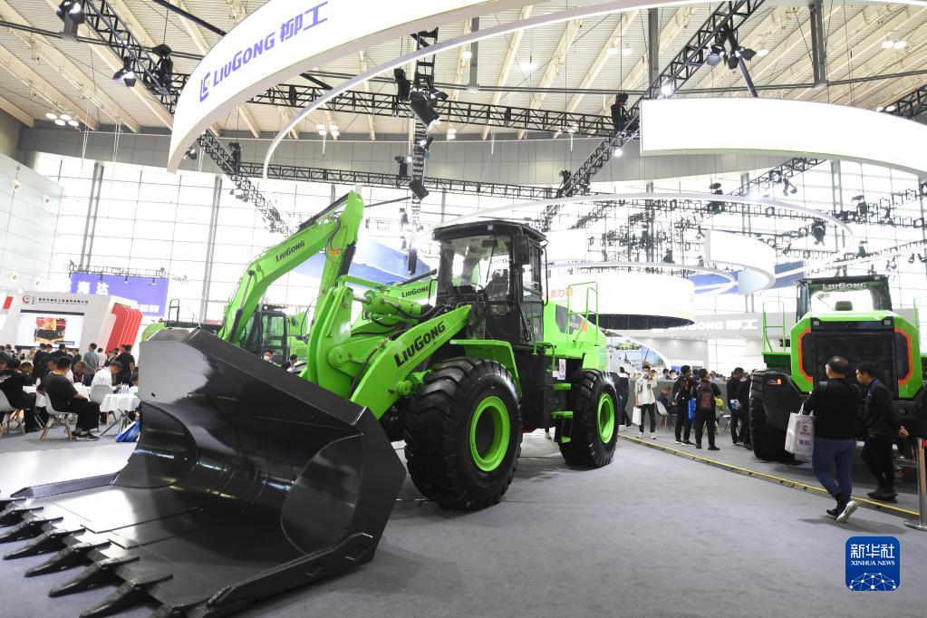 這是5月12日在長(cháng)沙國際工程機械展覽會(huì )現場(chǎng)拍攝的新能源工程機械設備。