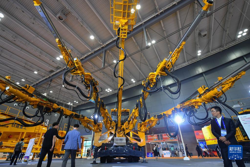 5月12日,觀(guān)眾在長(cháng)沙國際工程機械展覽會(huì )室內展區參觀(guān)隧道掘進(jìn)設備。