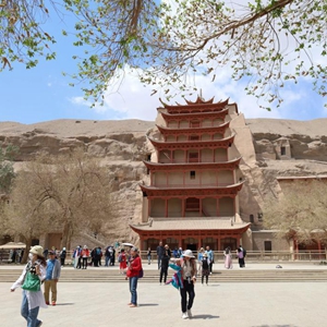5月11日,游客在莫高窟參觀(guān)游覽。