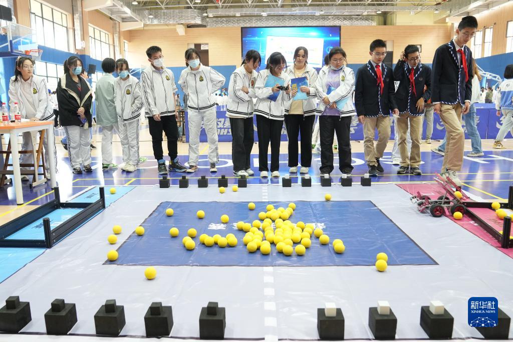 當日,上海市位育中學(xué)開(kāi)展校園科技活動(dòng),為學(xué)生們帶來(lái)一場(chǎng)“科技大集”。學(xué)生們通過(guò)體驗微型激光雕刻、觀(guān)看機器人演示等科教活動(dòng)感受科技魅力。