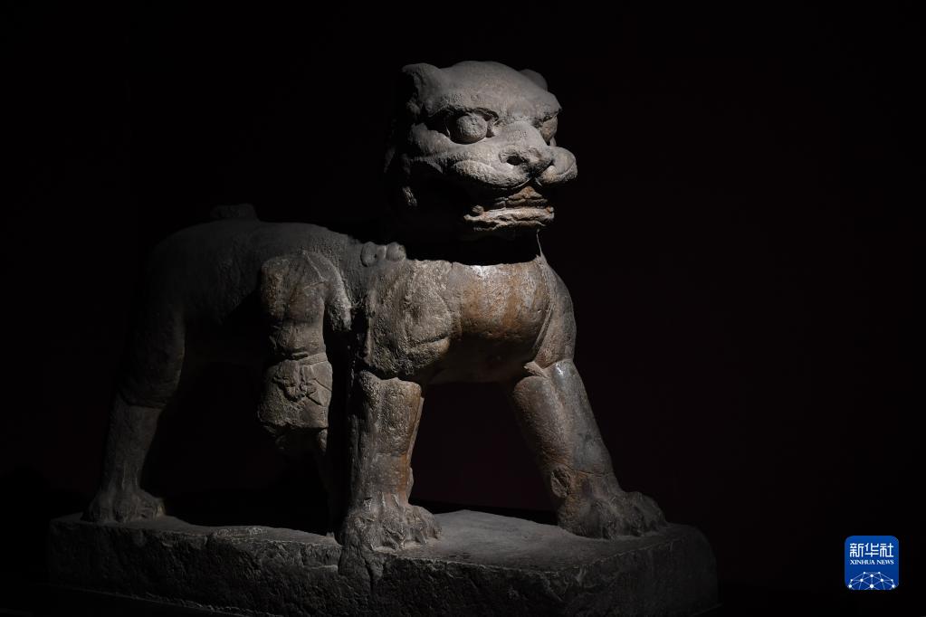 這是在西安碑林博物館拍攝的唐代石獅(5月9日攝)。古代中國的獅子多通過(guò)絲綢之路由外國進(jìn)貢而來(lái)。