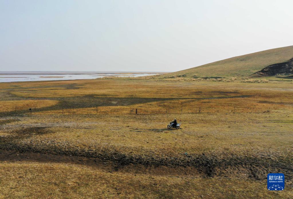 5月10日,徐沃德樂(lè )胡騎著(zhù)摩托在管護站附近巡護(無(wú)人機照片)。