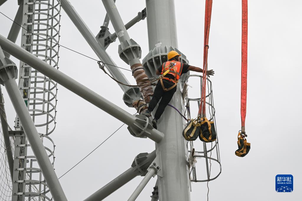 5月13日,工人在位于海南省文昌市的海南商業(yè)航天發(fā)射場(chǎng)1號工位施工。