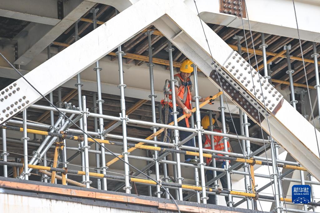5月13日,工人在位于海南省文昌市的海南商業(yè)航天發(fā)射場(chǎng)1號工位施工。
