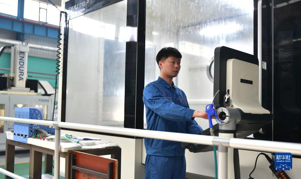 5月12日,在沈陽(yáng)睿昇精密制造有限公司,一名已和企業(yè)簽約的沈陽(yáng)工學(xué)院機械工程與自動(dòng)化學(xué)院畢業(yè)生在企業(yè)車(chē)間進(jìn)行實(shí)訓操作五軸加工中心。