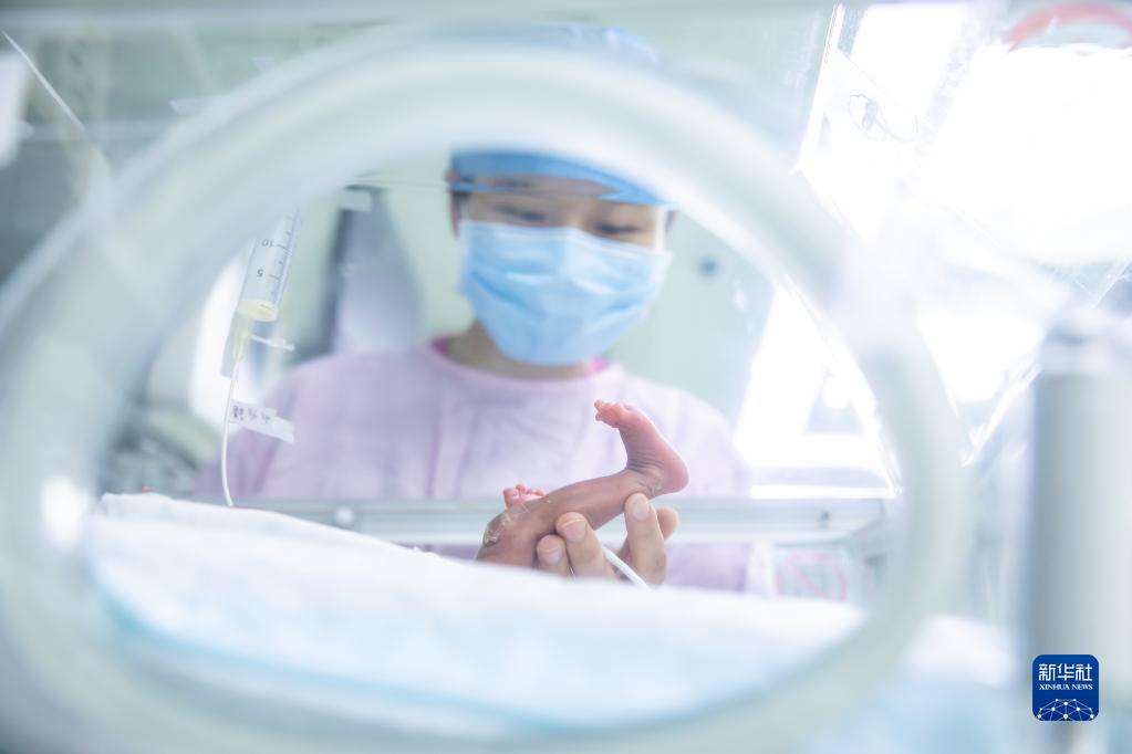 5月9日23時(shí)許,北京協(xié)和醫院新生兒重癥監護病房(NICU)護士楊楚嘉查看早產(chǎn)兒情況。