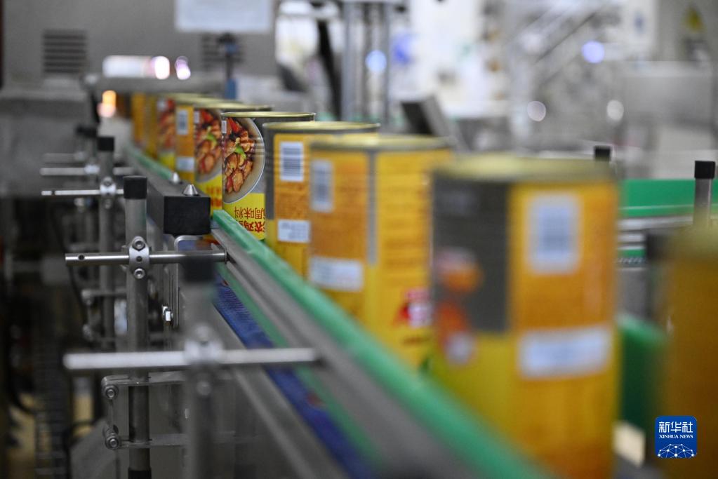 在聯(lián)合利華天津食品工廠(chǎng)黑燈車(chē)間,調味料產(chǎn)品在智能生產(chǎn)線(xiàn)上傳輸(5月11日攝)。
