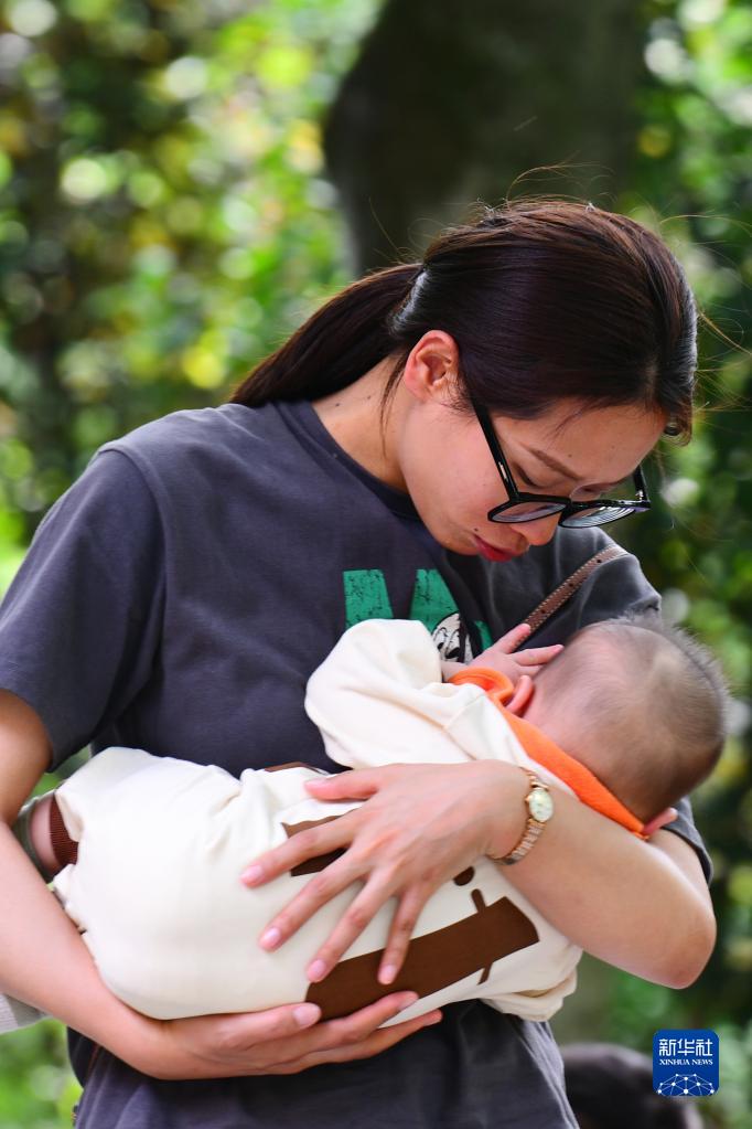 5月13日,在江蘇南京紅山動(dòng)物園,一位母親抱著(zhù)年幼的孩子。