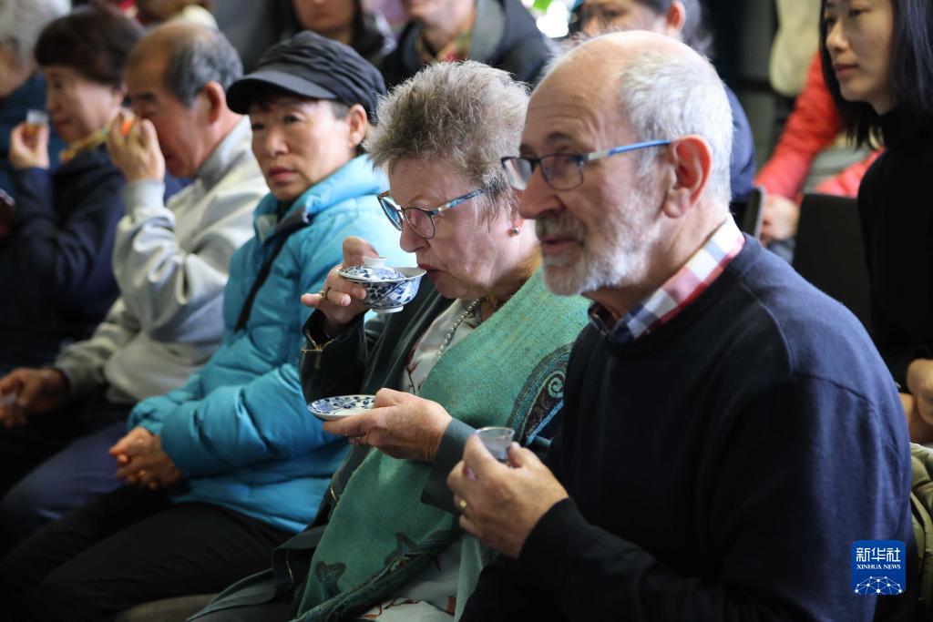 5月13日,在新西蘭克賴(lài)斯特徹奇舉行的“茶和天下·雅集”系列活動(dòng)走進(jìn)路易·艾黎中文學(xué)?;顒?dòng)上,當地市民品嘗中國茶。新華社發(fā)(孟韜 攝)