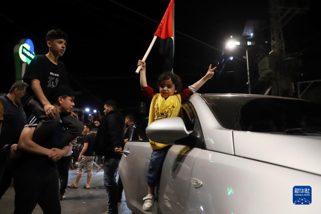 5月13日,巴勒斯坦人在加沙城街頭慶祝?;饏f(xié)議達成。