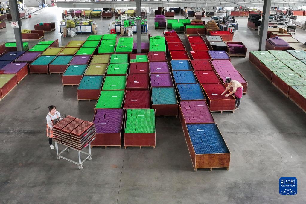 5月14日,工人在貴州岑鞏經(jīng)濟開(kāi)發(fā)區一家電氣公司生產(chǎn)車(chē)間忙碌(無(wú)人機照片)。