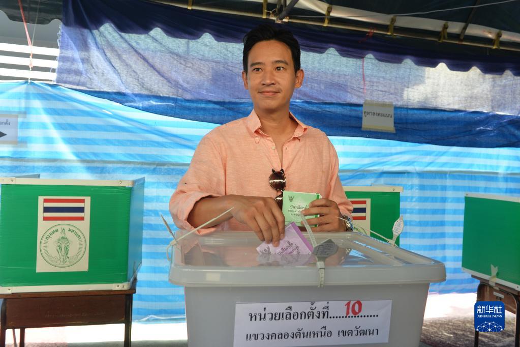 5月14日,泰國遠進(jìn)黨總理候選人皮塔在曼谷一處投票站投票。