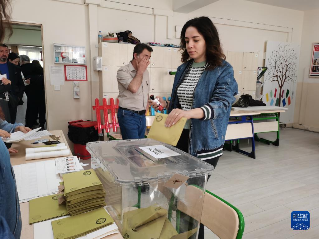 5月14日,在土耳其安卡拉,民眾在一處投票站參加投票(手機拍攝)。