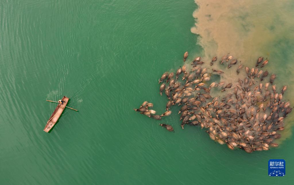 每年4-10月,在四川省南充市蓬安縣相如鎮油房溝村嘉陵江段,成群結隊的水牛在船只的護送引導下,清晨從岸邊結隊游上江心島啃食青草,黃昏又下水回游上岸歸欄,成為當地一道獨特的景觀(guān),吸引不少游客前來(lái)觀(guān)看。