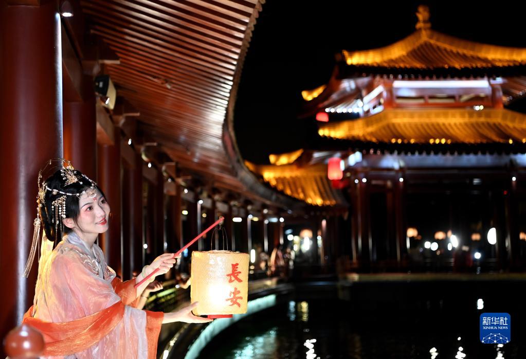 位于陜西西安城南的大唐芙蓉園,是在唐代芙蓉園遺址以北、仿照唐代皇家園林式樣重建的一座全方位展示盛唐風(fēng)貌的大型文化主題遺址公園。園內紫云樓館橋飛渡,彩霞亭煙波浮動(dòng),望春閣亭亭玉立……漫步其間,隨處可見(jiàn)身著(zhù)漢服的游客攜親友同行,光影流動(dòng),恍若穿越千年。水舞燈光秀《大唐追夢(mèng)》、歌舞劇《夢(mèng)回大唐》、宮廷燕樂(lè )《鼓》等創(chuàng )新演藝也讓唐風(fēng)國韻在此散發(fā)經(jīng)久不衰的藝術(shù)魅力。