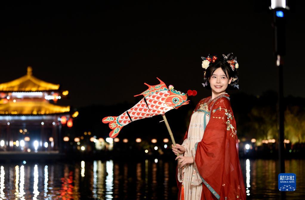 位于陜西西安城南的大唐芙蓉園,是在唐代芙蓉園遺址以北、仿照唐代皇家園林式樣重建的一座全方位展示盛唐風(fēng)貌的大型文化主題遺址公園。園內紫云樓館橋飛渡,彩霞亭煙波浮動(dòng),望春閣亭亭玉立……漫步其間,隨處可見(jiàn)身著(zhù)古裝的游客攜親友同行,在流動(dòng)的光影之間,恍若穿越千年。水舞燈光秀《大唐追夢(mèng)》、歌舞劇《夢(mèng)回大唐》、宮廷燕樂(lè )《鼓》等創(chuàng )新演藝也讓唐風(fēng)國韻在此散發(fā)經(jīng)久不衰的藝術(shù)魅力。