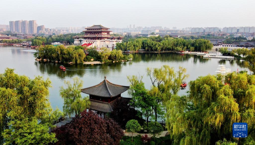 西安大唐芙蓉園(4月19日攝,無(wú)人機照片)。