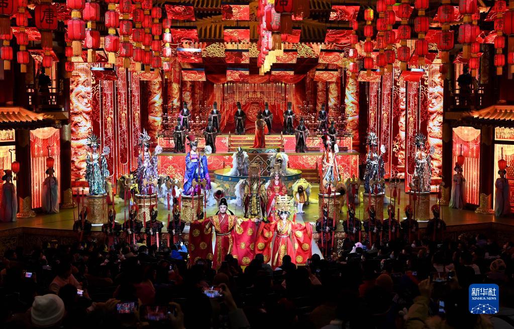西安大唐芙蓉園內上演的歌舞劇《夢(mèng)回大唐》(1月24日攝)。