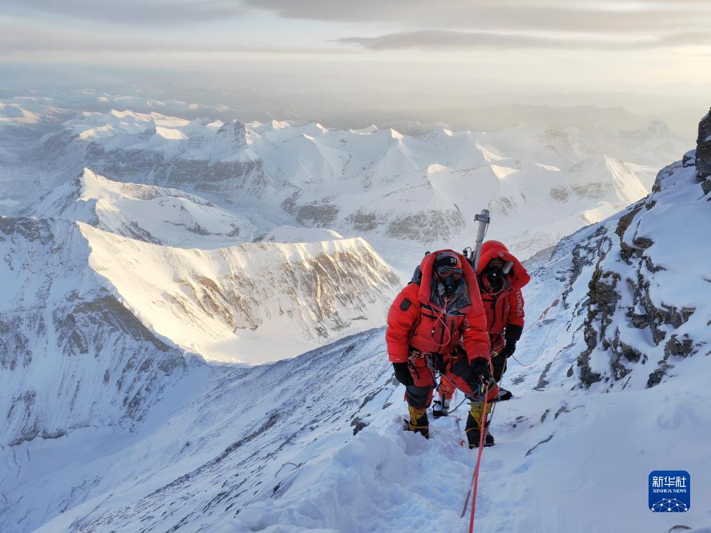 5月23日,2023年珠峰科考登頂隊員在沖頂。