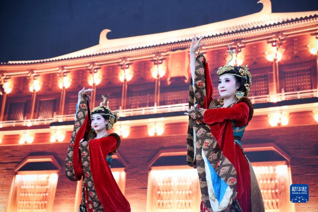 5月22日晚,舞蹈演員在2023陜西“博物館與美好生活”文博之夜活動(dòng)上表演唐樂(lè )舞大曲《團亂旋》。