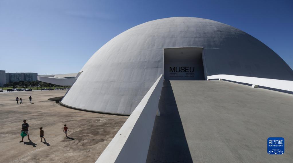 這是5月17日在巴西首都巴西利亞拍攝的巴西利亞國家博物館。
